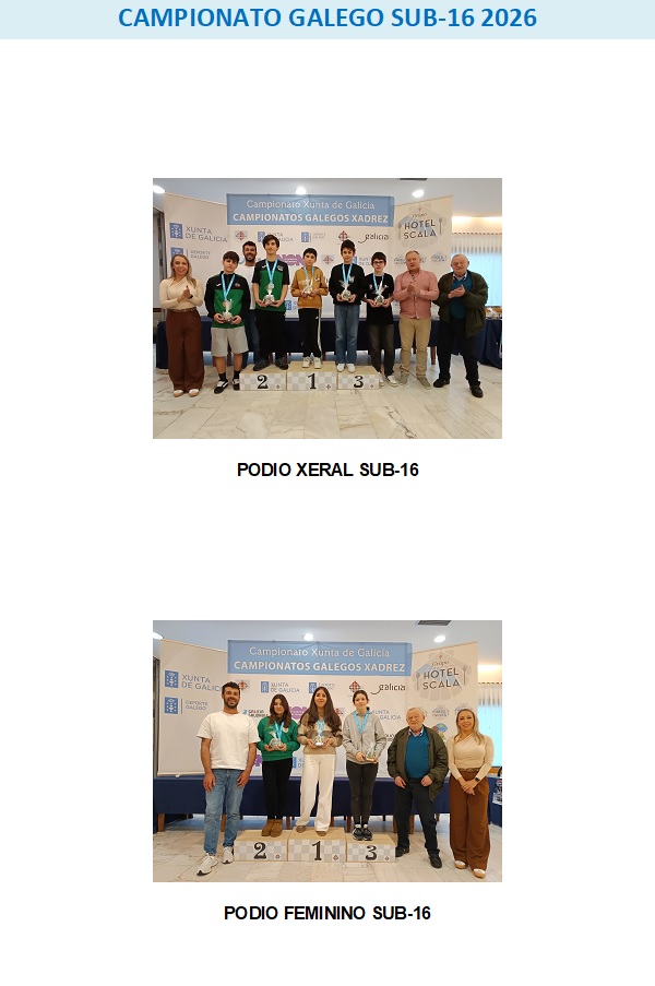 Ayer tuvo lugar la clausura y entrega de premios en el Hotel Scala (Padrón) del Campeonato “Xunta de Galicia” Sub-16 2026.