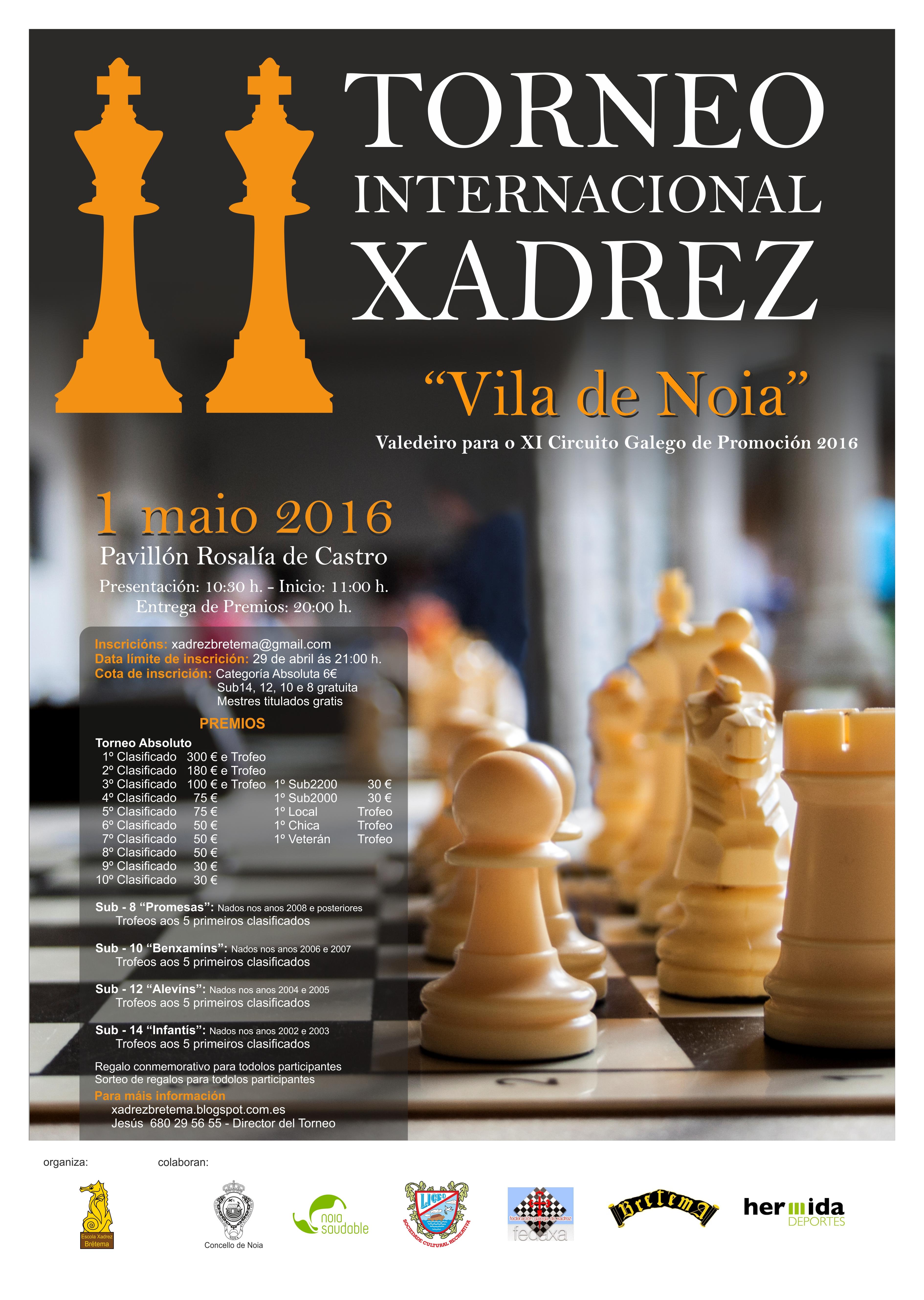 O Domingo, 01 de Maio de 2016 tivo lugar o II Torneo Vila de Noia 2016, o 1º torneo pertencente ao XI Circuito Galego xadrez promoción 2016, onde participaron máis de 130 xogadores.