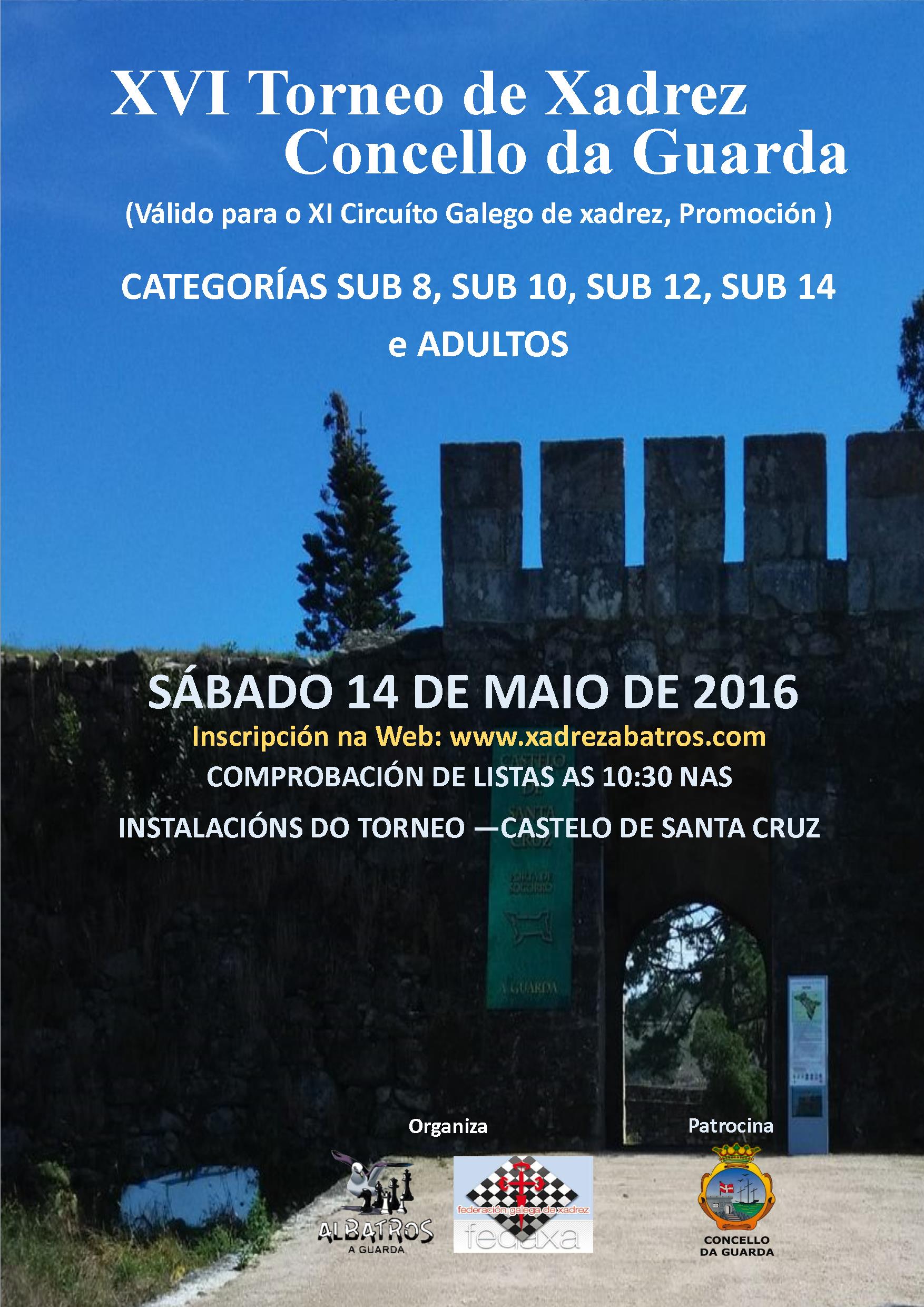 O Sabado, 14 de Maio de 2016 tivo lugar no Castelo de Santa Cruz – A Guarda o XVI Torneo de xadrez Concello de A Guarda, 3º torneo pertencente ao XI Circuito Galego xadrez Promoción. Máis de 140 participantes reuníronse neste evento.