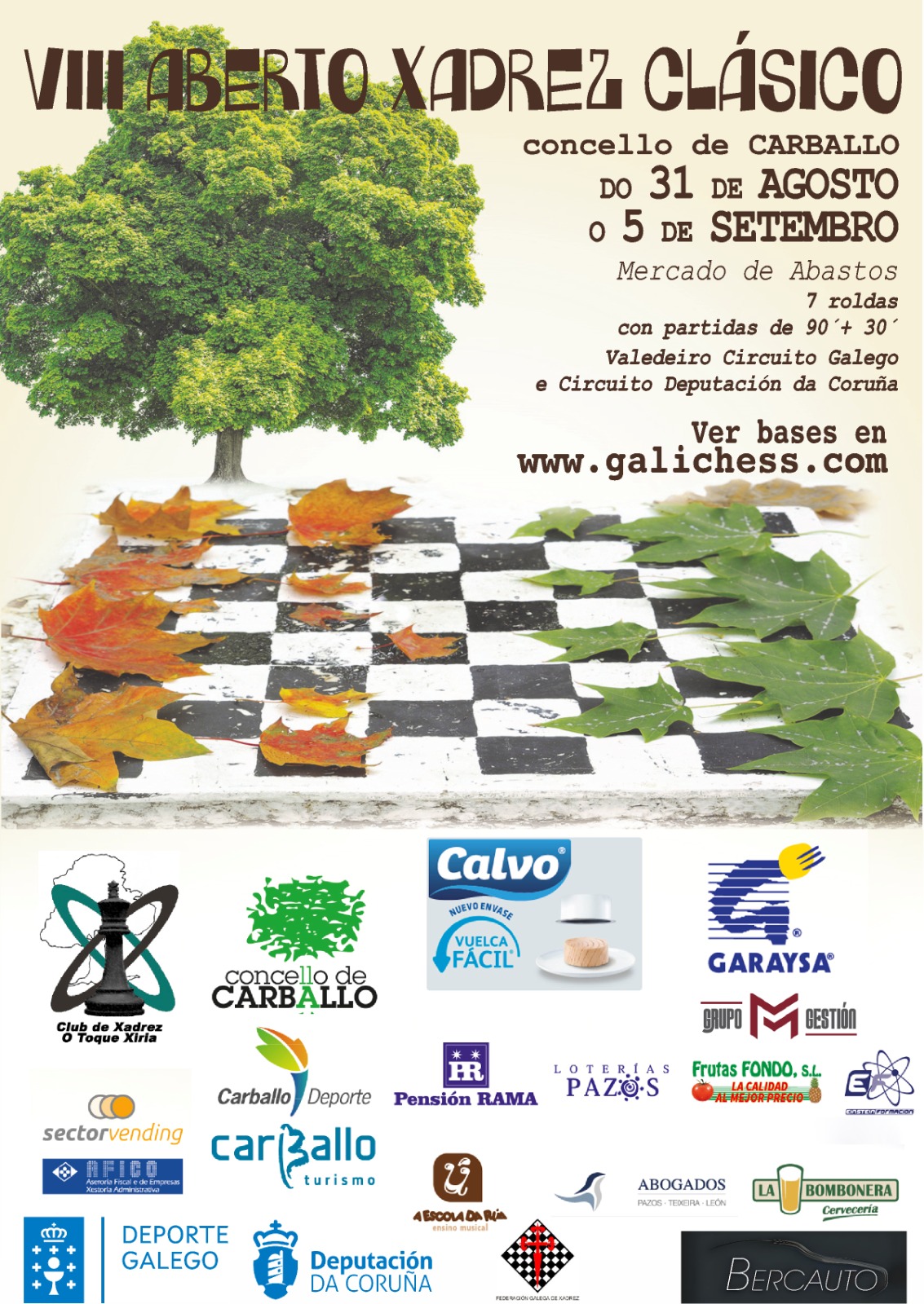 Do 31 de Agosto ao 5 de Setembro de 2025 no Mercado Municipal de Abastos de Carballo, tivo lugar o 9º torneo pertencente ao XXXVI Circuito Galego de Xadrez Internacional 2025: VII Aberto Concello de Carballo Clásico