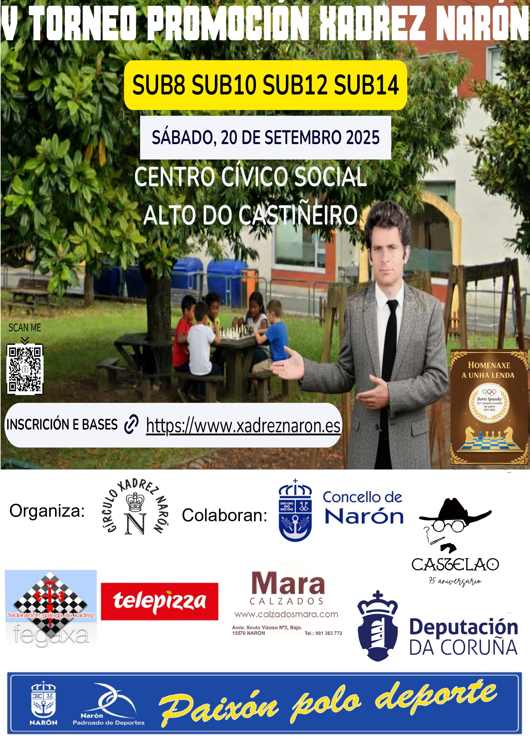 O Sábado, 20 de Setembro tivo lugar a clausura e entrega de premios do 9º torneo pertencente ao XVIII Circuíto Galego Promoción 2025: V Torneo Promoción Narón 2025, coa participación de 28 xogadores.