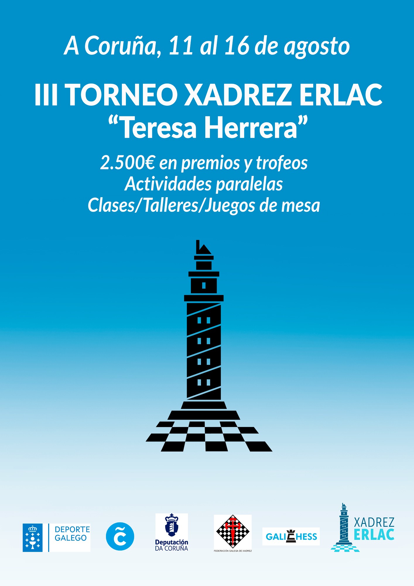 Do 11 ao 16 de Agosto na Fundación Escuela Universitaria de Relaciones laborales de A Coruña, tivo lugar o 7º torneo pertencente ao XXXVI Circuito Galego de Xadrez Internacional 2025: III ERLAC Clásico Cidade da Coruña (torneo tipo B).
