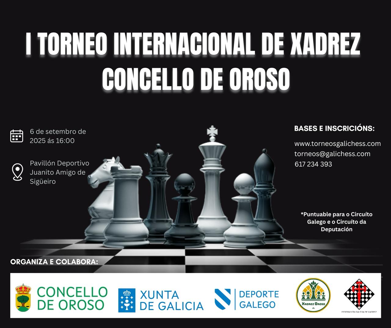 O Sábado, 6 de Setembro de 2025 no Pavillón Juanito Amigo Ferreiro (Sigüeiro) tivo lugar o 10º torneo pertencente ao XXXVI Circuito Galego de Xadrez Internacional 2025: I Internacional Concello de Oroso.