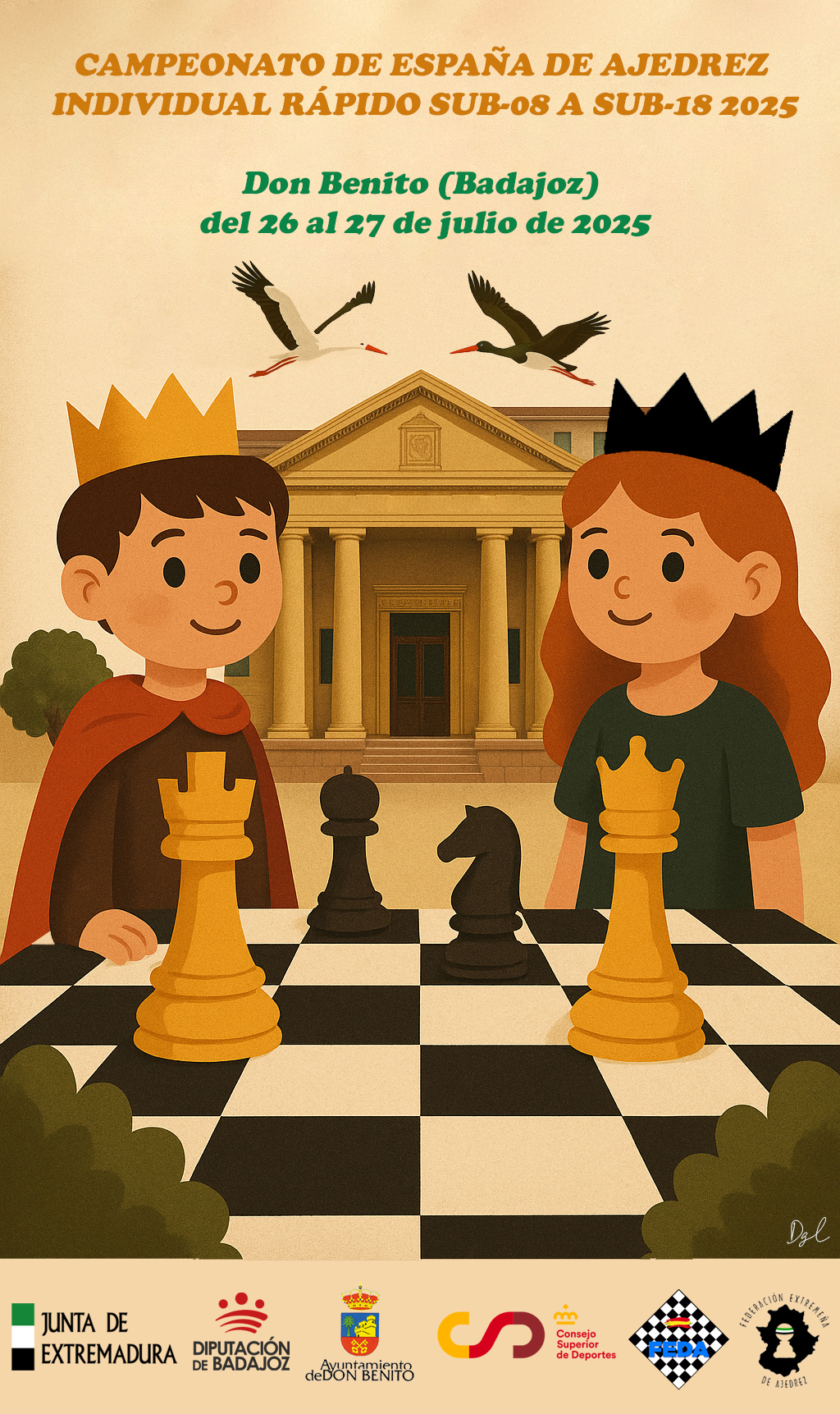 O Domingo 27 de Xullo tivo lugar a clausura e entrega de premios na Institución Ferial de Extremadura FEVAL -Salón de Bodas en Don Benito (Badajoz) do Campionato de España de Xadrez Rápido Sub 8 a Sub18 2025.