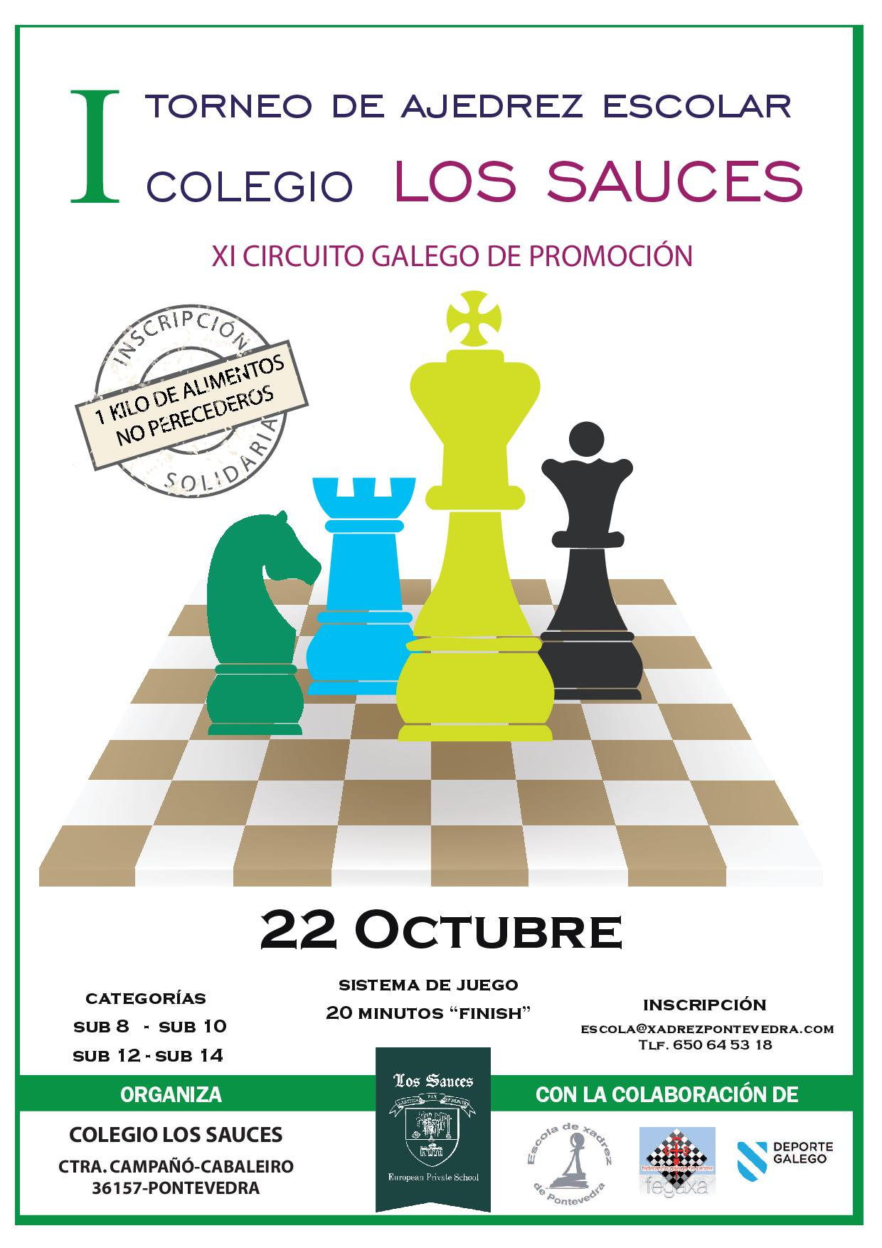 El Sabado, 22 de Octubre de 2016 tuvo lugar en el Colegio Los Sauces de Pontevedra el 16º torneo perteneciente al XI Circuito Gallego de Ajedrez Promoción 2016 con cerca de 90 jugadores participantes.